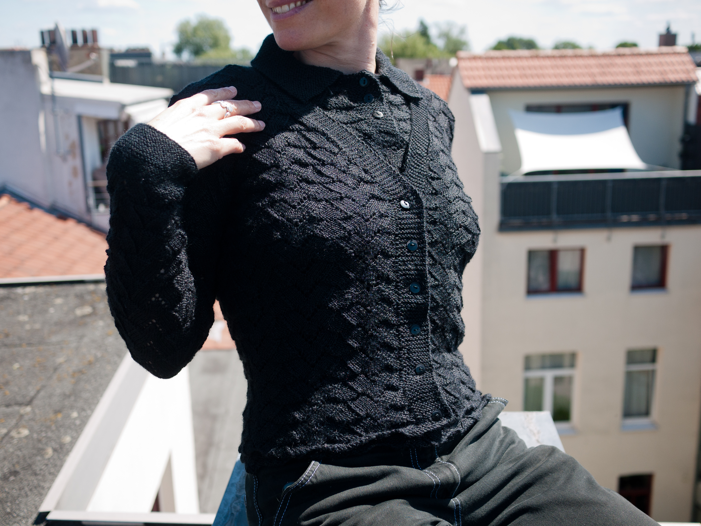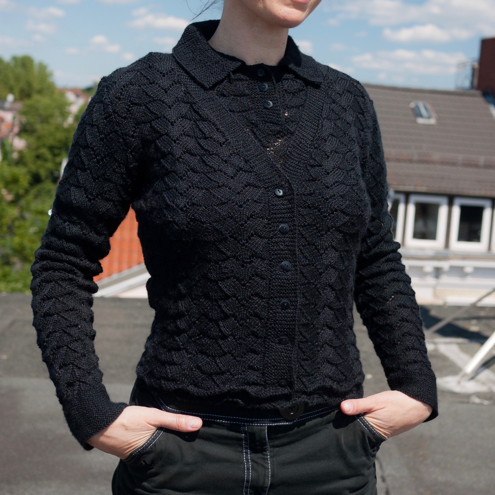 All in all, this is a wonderful design and very flattering to the figure. Nota bene, my upper body is broad and flat and I am not exactly model-thin, but this ensemble somehow manages to make me look both svelte and curvy. The wool/nettle fingering weight is perfect for fall and spring. I love the buttoned placket and collar of the jumper. Knitting this was definitely worth all the time and hard work and it will be getting a lot of wear for years to come.