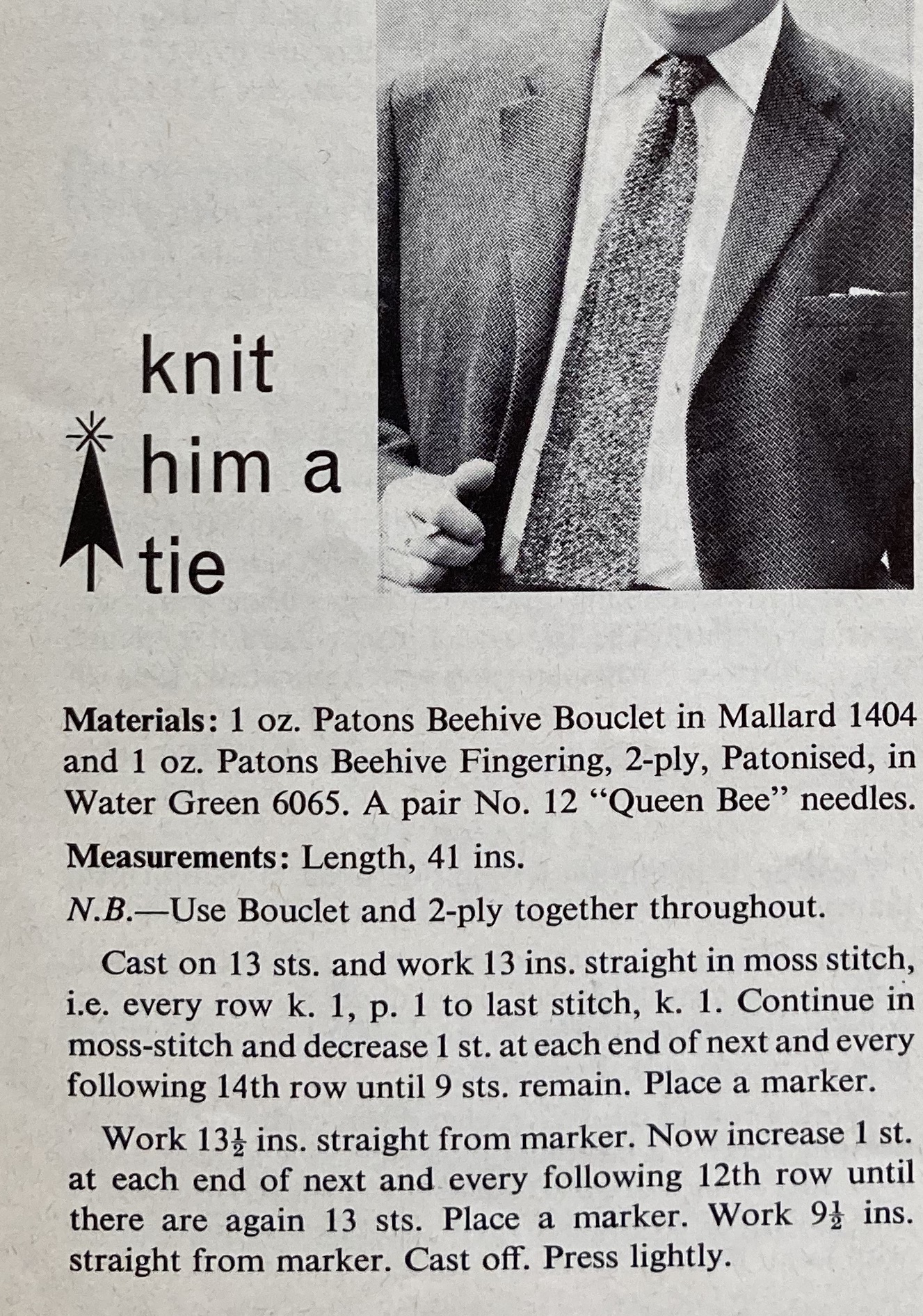 There are fewer designs for accessories, but the utter fabulousness of this loop-stitch crocheted hat makes up for anything else that could be missing. The model in the photo features in many issues from this time period and always looks either quite sad or has that alluring Mona Lisa smile that’s she’s sporting here. (Am I mean, or wrong, to assume that she probably had bad teeth?) I would smile widely if wearing that hat, and I hope everyone who saw me in it would too. Also, knit your man a tie!