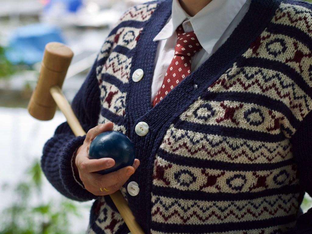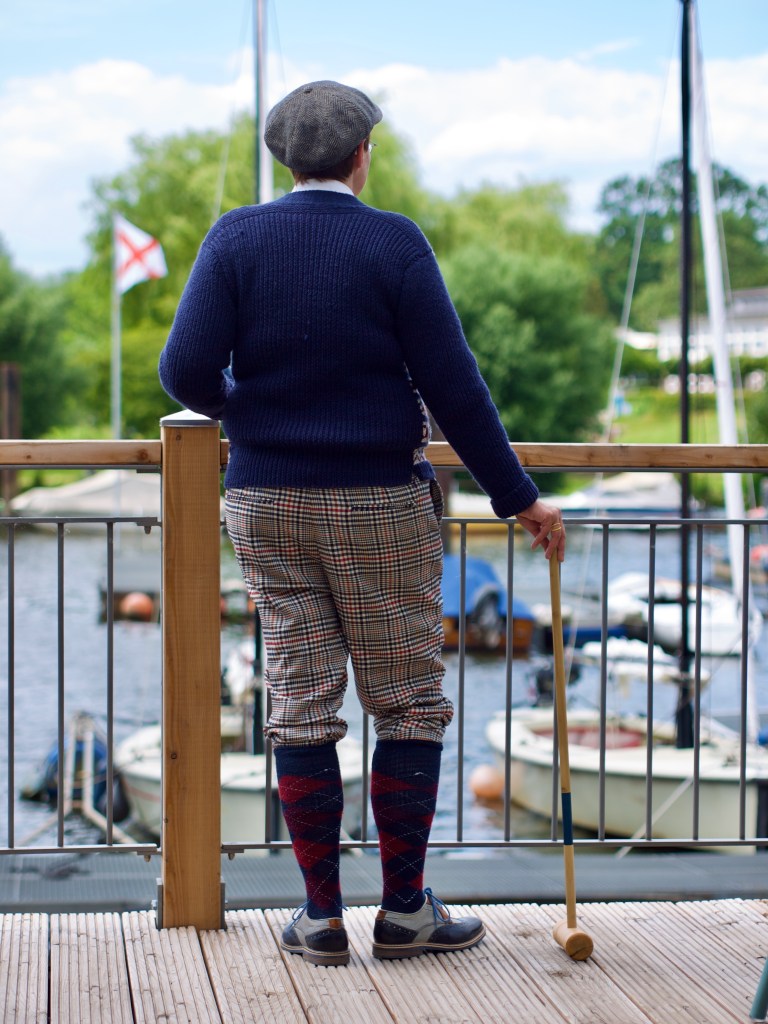 The Stephen Dale in the story is quite rich (of course), has a yacht and participates in all the usual 1920s upper-class sports, so here is my “Stephen Dale” wearing his all-purpose sport cardigan to play a round of croquet on a lovely leisurely Sunday afternoon: