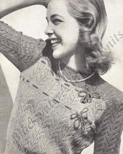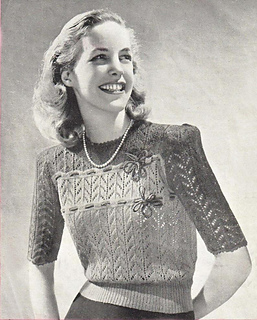 Since there wasn’t anything I really wanted to make from the August 1965 issue, this month’s project is taking us back to 1946. It’s technically not a Stitchcraft pattern (though Stitchcraft magazine was around then), but it is a pattern from Stitchcraft‘s patron wool company, Patons, so close enough for this blog, and conveniently fit into a lace-themed KAL on the All Things Vintage Ravelry forum. The pattern is for a short-sleeved jumper and I’m working to make it into a twin set.