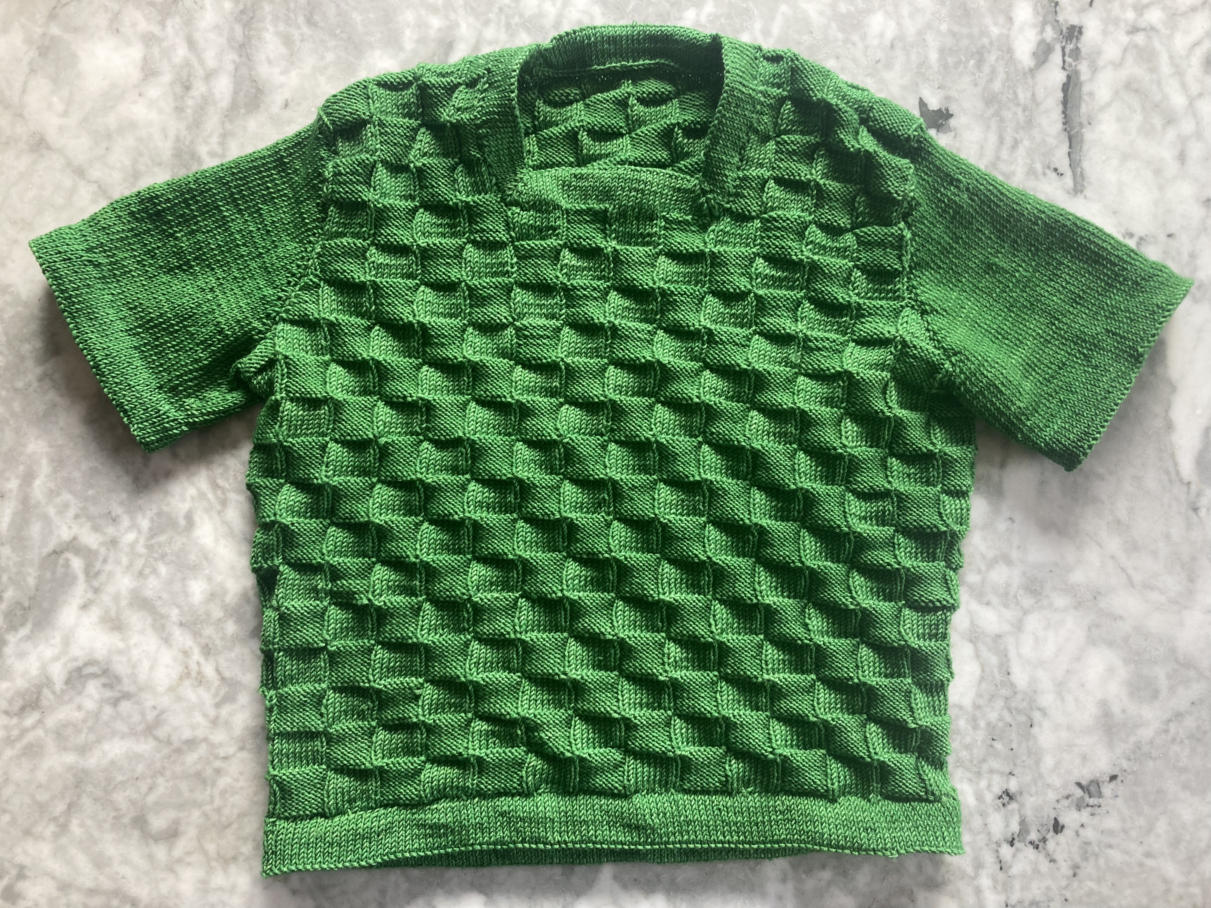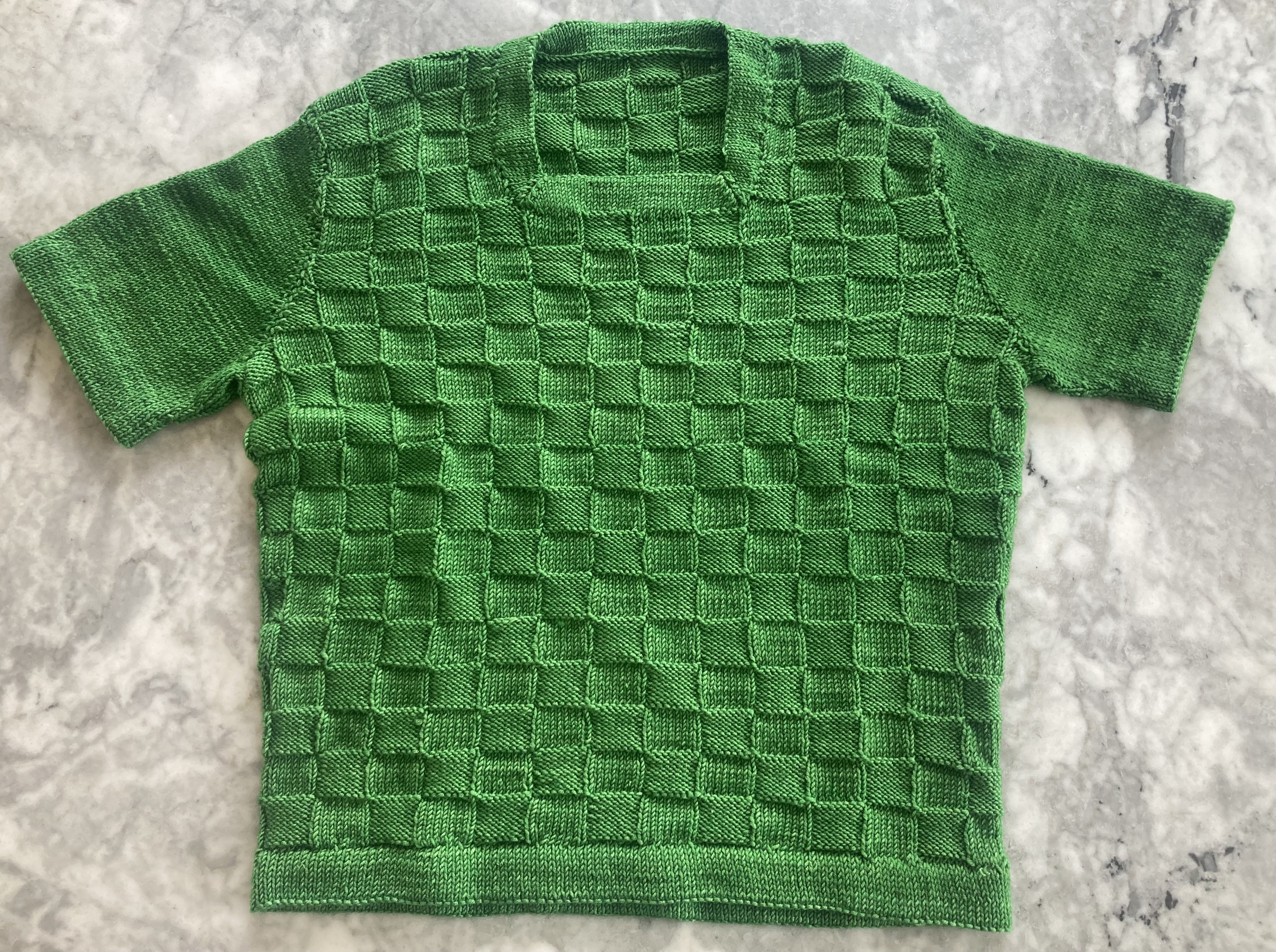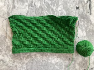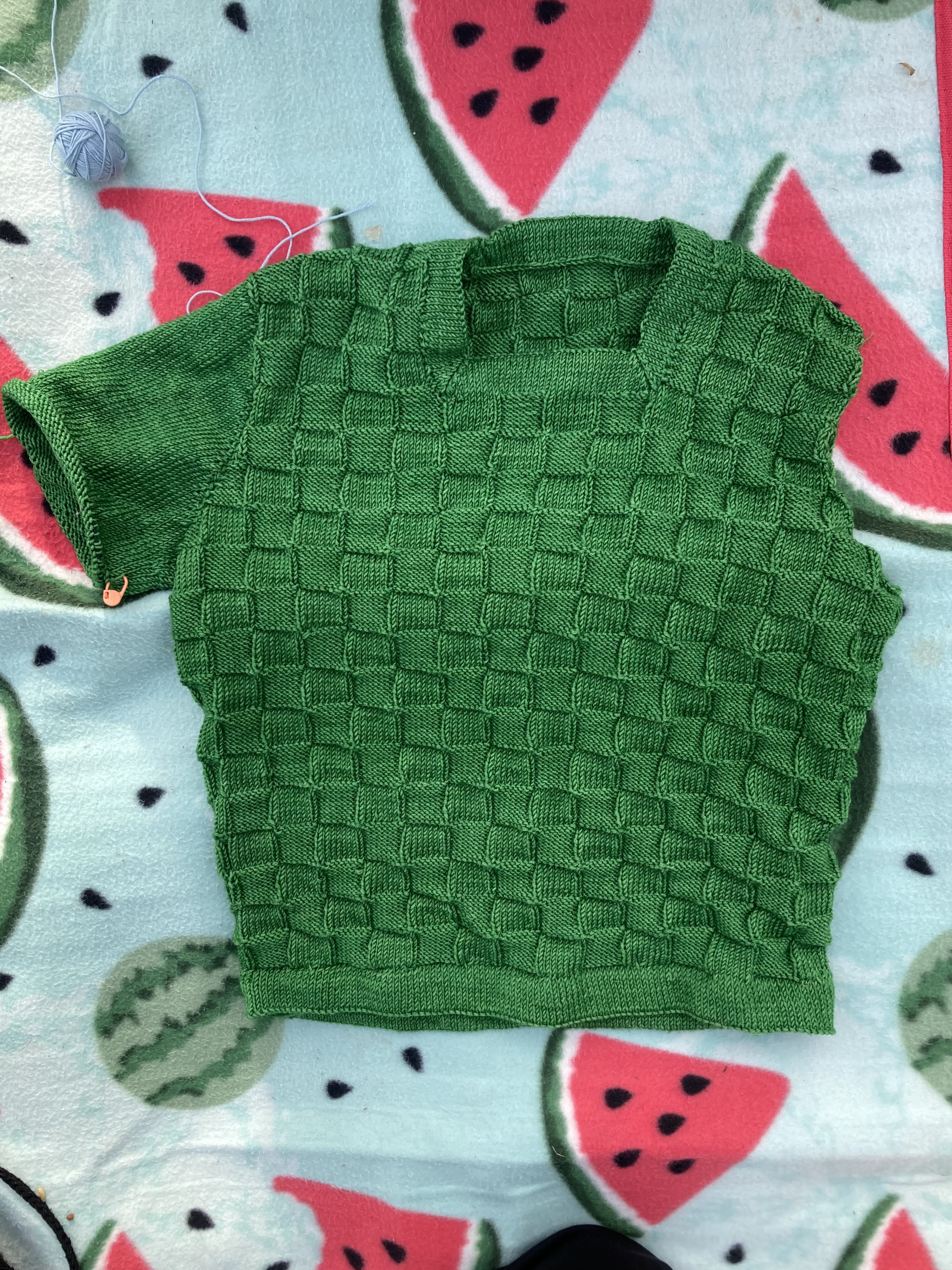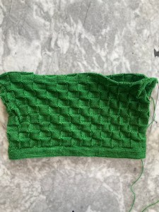 It went quite quickly. I made it in the round to the armhole openings. It was a bit snug when trying on, but I was sure it would stretch with blocking.
