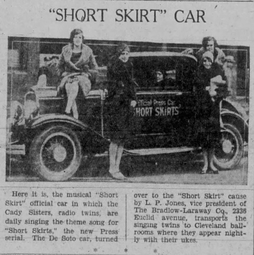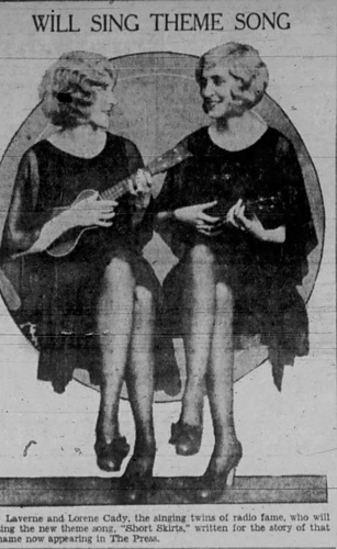 and my favourite, a theme song written especially for the story and performed live in a moving DeSoto motor-car by singing twins Laverne and Lorene Cady, accompnying themselves on ukeleles:
