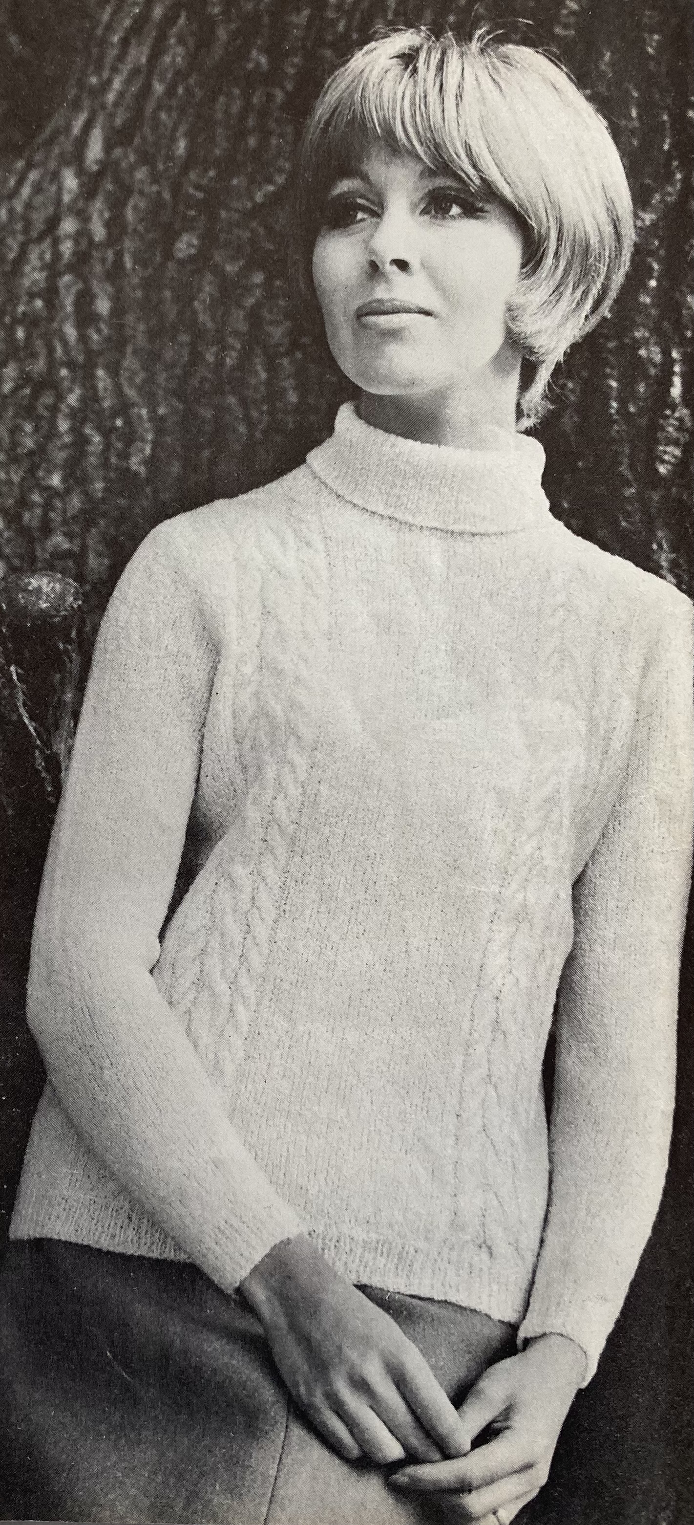 The October 1967 issue of Stitchcraft brings “special news for knitters”: a new wool, Patons Princess. A lightweight yarn made up of 85% lambswool and 15% angora, it was presumably soft and fluffy, and promised to be “smooth and easy to knit”. The classic raglan pullover and lacy “shell” on the cover both use it, in bright pink “Camellia” colour.