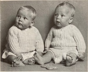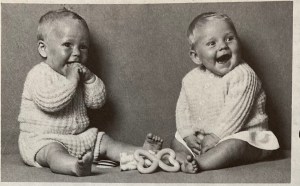 “Something to laugh about” is Stitchcraft’s caption for the photo of this month’s project: a baby’s cardigan (“button-up”) from October 1967. For once, the babies in the photo are actually happy!