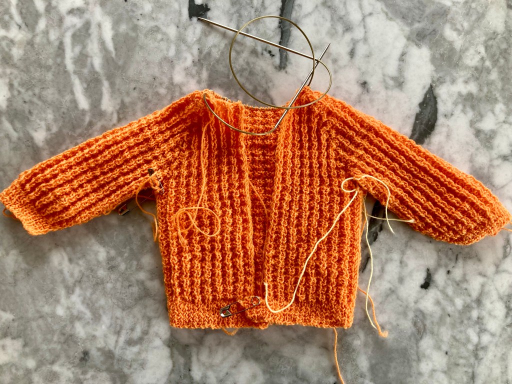 All in all, turned out fine and will brighten up some baby’s wardrobe. And it even got done in October! Next month’s project will be a stranded pullover for myself.