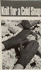 It is currently minus 13 degrees Celsius outside, so this caption from the January 1968 issue of Stitchcraft couldn’t have been timlier for this month’s project: cabled mittens (“mitts”) that promised me “Cosy fingers and thumbs”.