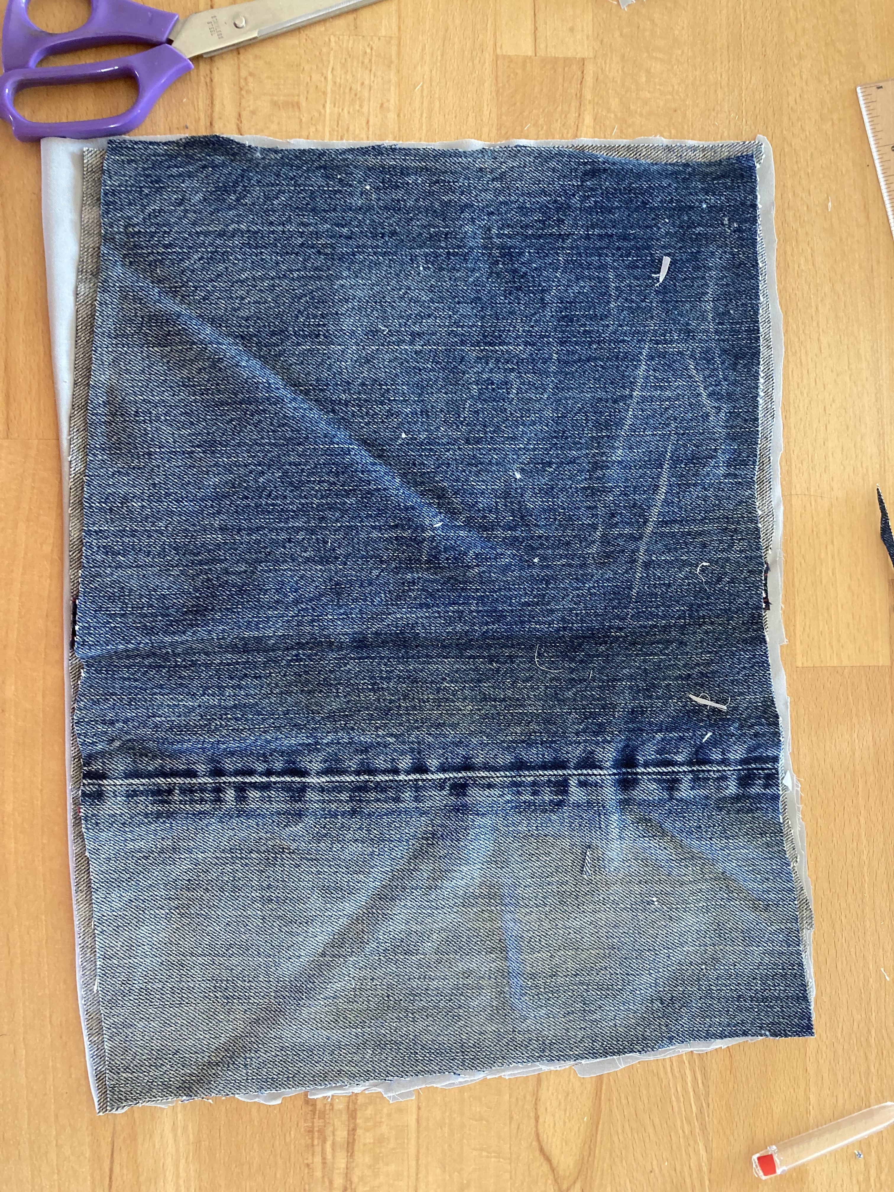 In spite of that, it’s…. not bad? I mean, functionally it’s fine. My laptop fits in it perfectly, the zipper works (hallelujah), the padding is a good thickness, and denim is a good, tough, washable fabric for laptop cases. The design is indeed bold and bright, and quite cheerful. The crooked edge annoys me, but I could re-do it. Still, somehow I feel this project is not quite right. Maybe I will fix the crooked edge and try to sell it? Give it as a gift to someone with the same size laptop? Keep it and let it grow on me? We’ll see.