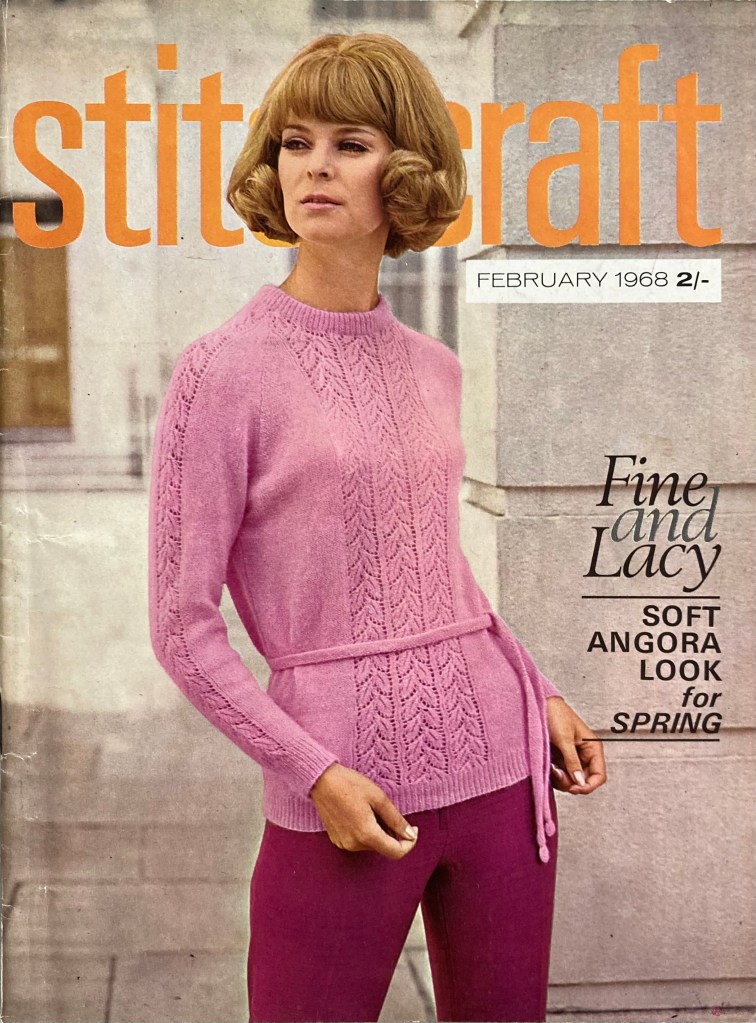 After the “cold snap” predicted in the January 1968 issue of Stitchcraft (and which actually happened throughout the icy, snowy month of January 2026), the February 1968 issue looks toward Spring. There are still plenty of warm things to knit, but the focus is on layering and knitwear as outerwear.
