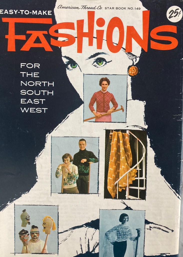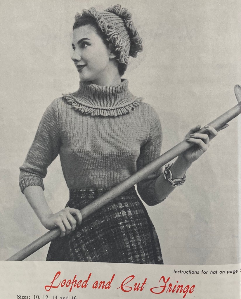 You can also make a beach bag from towelling material gathered with “Rufflette” curtain tape, or sew an easy sundress for a small child — basically a big rectangle of fabric gathered and sewn at the shoulders — and embroider a lucky fish on the pocket. Speaking of lucky fish, how about this masterpiece of 1960s advertising copywriting that accompanies a photo of a woman “caught” in a fish net? It’s all happening at your local Scotch Wool Shop.