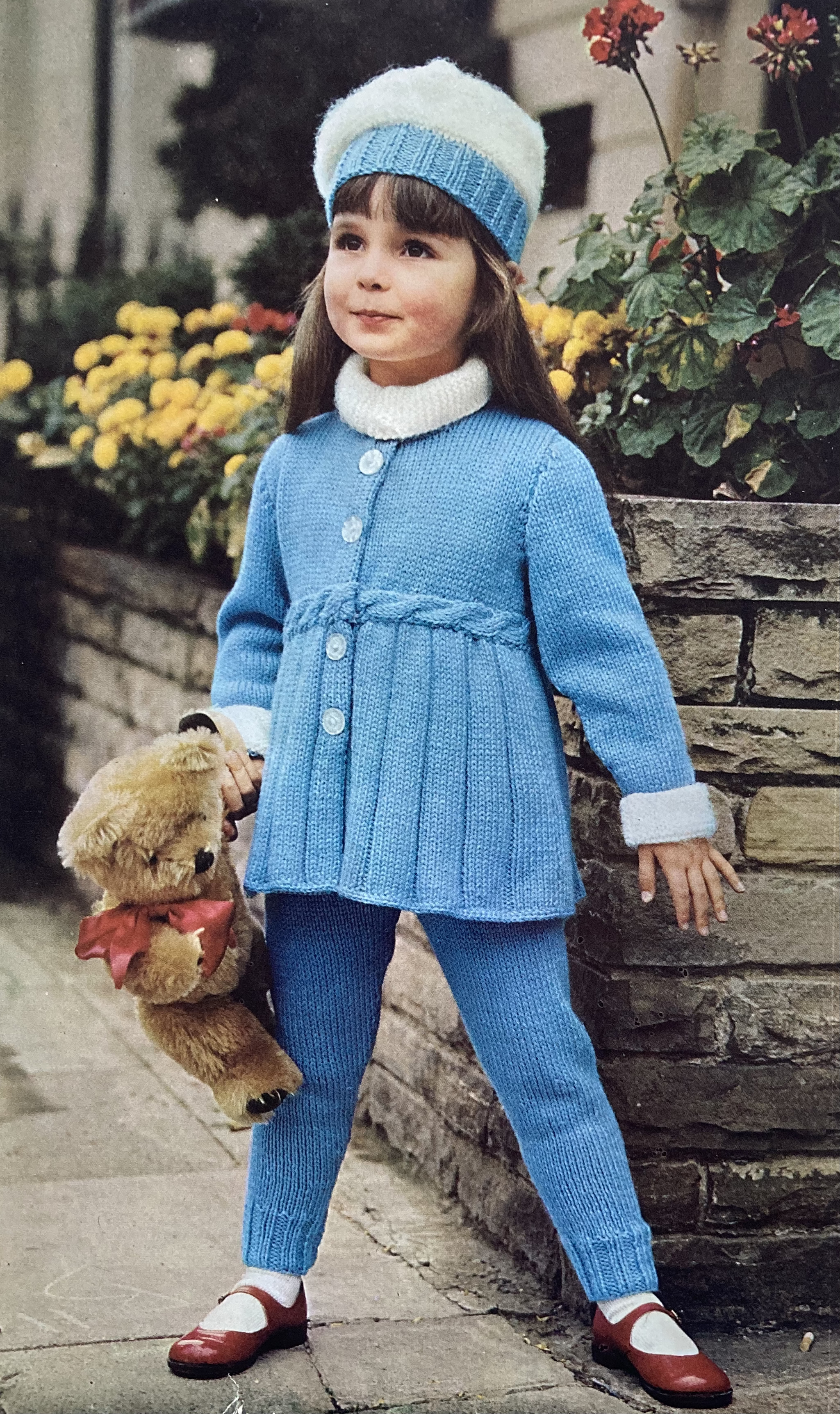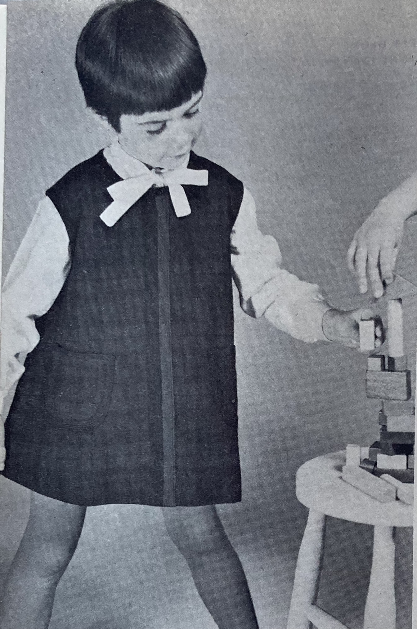 If “Fast Forward, January 1967” seems familiar to you, you are not wrong! I had already made this wonderful “Fashion for Tots” children’s jacket a couple of years ago, and tried my hand at a pleated skirt “pinafore” intended to go over this slim-style sweater (see picture below). The pinafore dress was, unfortunately, a failure, as the wool was too heavy and the finished garment just sagged and sagged. I ended up frogging the whole thing and using the wool for my very first blog project, the Green check jumper from January 1960. Notwithstanding the pinafore, the January 1967 issue is incredible and has so many projects in it that I want to make that it’s a go-to when I can’t find anything I like in a current issue.