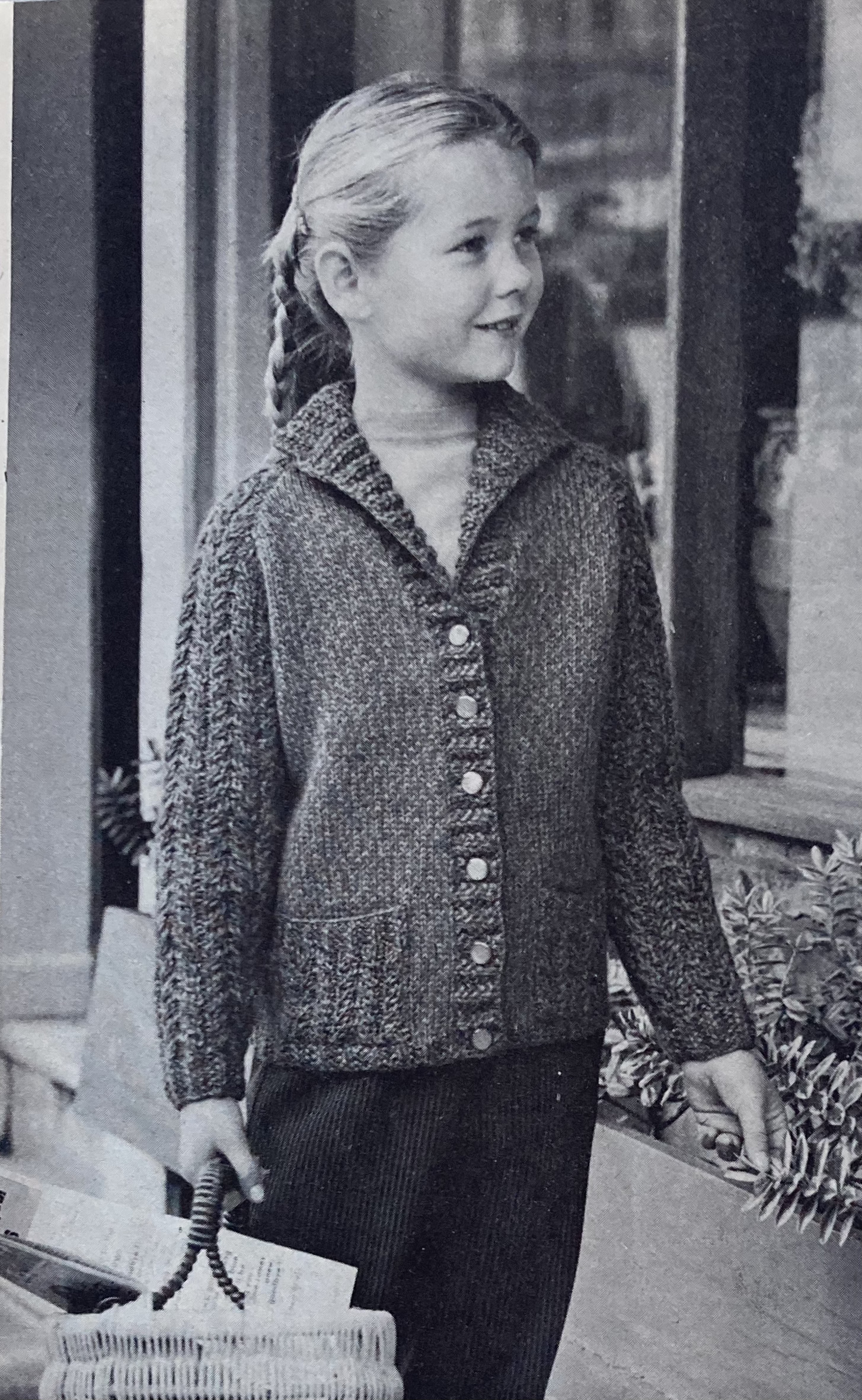 Said pattern was the first one I had worked with that increased and decreased in the course of the pattern repetition, and I was at a loss to deal with the side-seam and sleeve increases and decreases at first. The pattern, like all vintage patterns from this period, assumes you know what you are doing, and there are no charts in any case. I learned a lot and I can see that the side increases on the cardigan are much nicer than on the jumper! (Carefully photographed as to be unnoticeable, but believe me.)