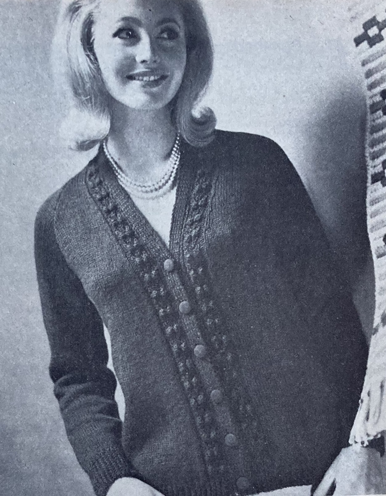 “Courtelle” was a synthetic fibre developed in the late 1950s by Courtaulds Ltd, a textile manufacturing company that expanded to include artificial silk (rayon/viscose) at the beginning of the 20th century and went on to produce many different types of artificial and synthetic fabrics, either cellulose-based (acetate, lyocell) or acrylic. Courtelle was an acrylic fibre, 100% synthetic, and featured in many different brands of hand-knitting wool around this time, such as Chadwick’s, Bairnswear (the company was bought by Courtaulds in 1953), Emu or Sirdar in the UK, Sofil, Laines du Pingouin or Georges Picauld in France, Austermann in Germany, Elle, Fiesta or Saprotex in South Africa, Phentex in Canada, and so on. As Patience Horne writes in this month’s issue of Stitchcraft, it was “easy and smooth to knit” (didn’t tangle), “very economical”, and “washes and wears wonderfully” (didn’t shrink or fade). She also claims it was “lovely warm” (pretty sure one sweated in it quite awfully) and “light as a feather” (it was not).