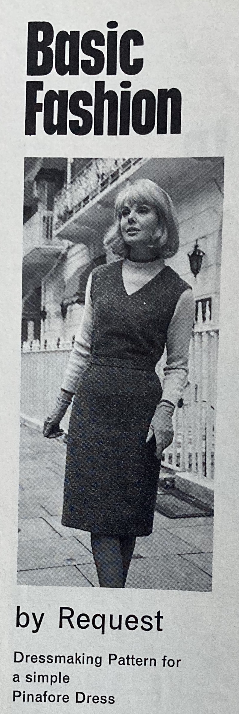 The centrefold photo shows a slinky variation on the theme with a dress and/or skirt combo featuring a pretty beaded and textured design. Like the chevron dress from April 1967, the designs pick up some elements of 1920s and 30s fashion, while keeping a distinctly late-60s shape.