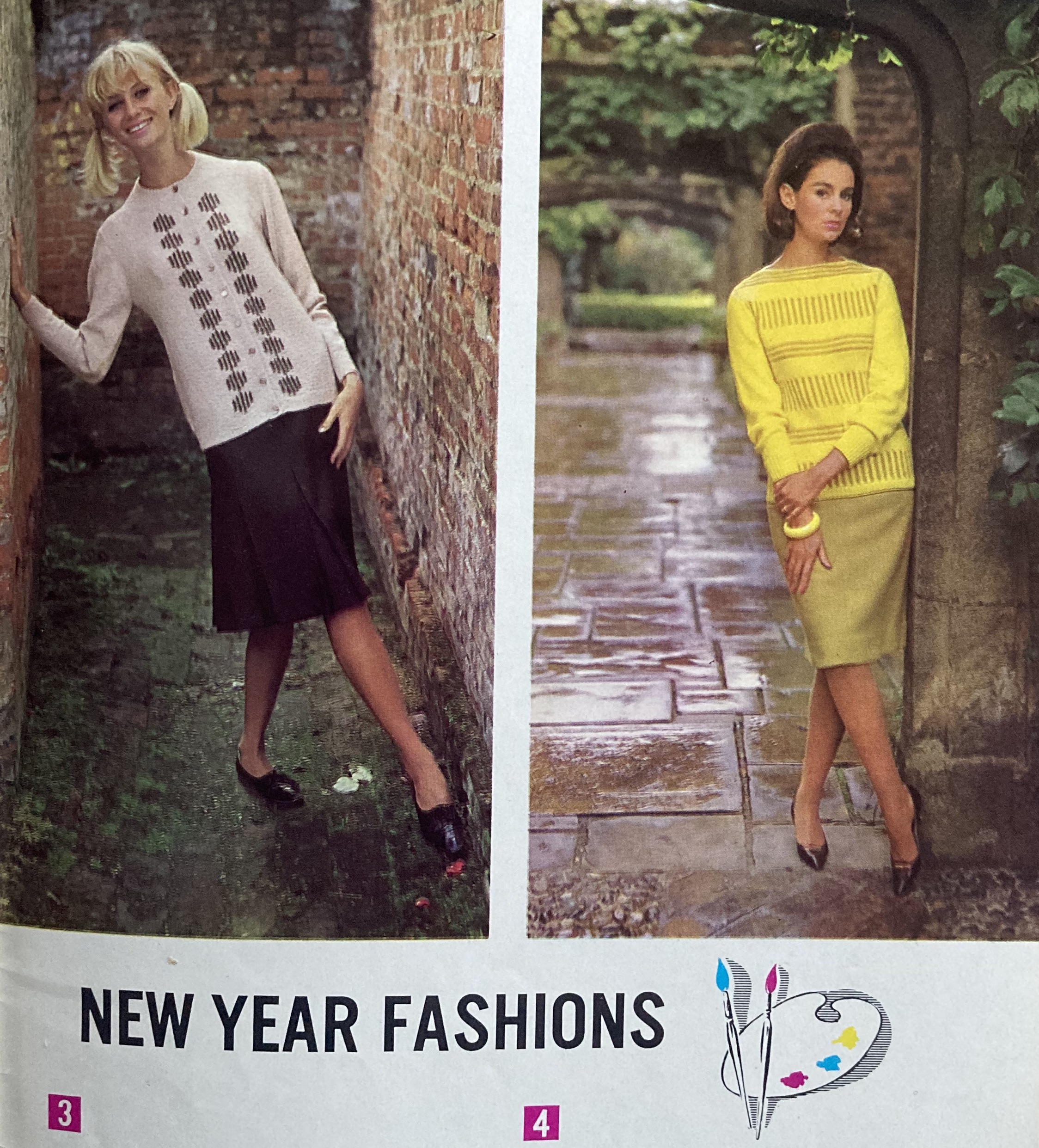 It’s time for a “Fashion Switch” over at Stitchcraft! 1967 is the year where knitted dresses really start to feature, and as far as I can tell, the “switch” part means you can either make a dress or a skirt combo and mix and match. The cover designs fit in well with the trend: high necks, short skirts, deep raglan armholes, A-line shaping and big patch pockets. Note, too, the huge hats — they will only get bigger in the months to come.