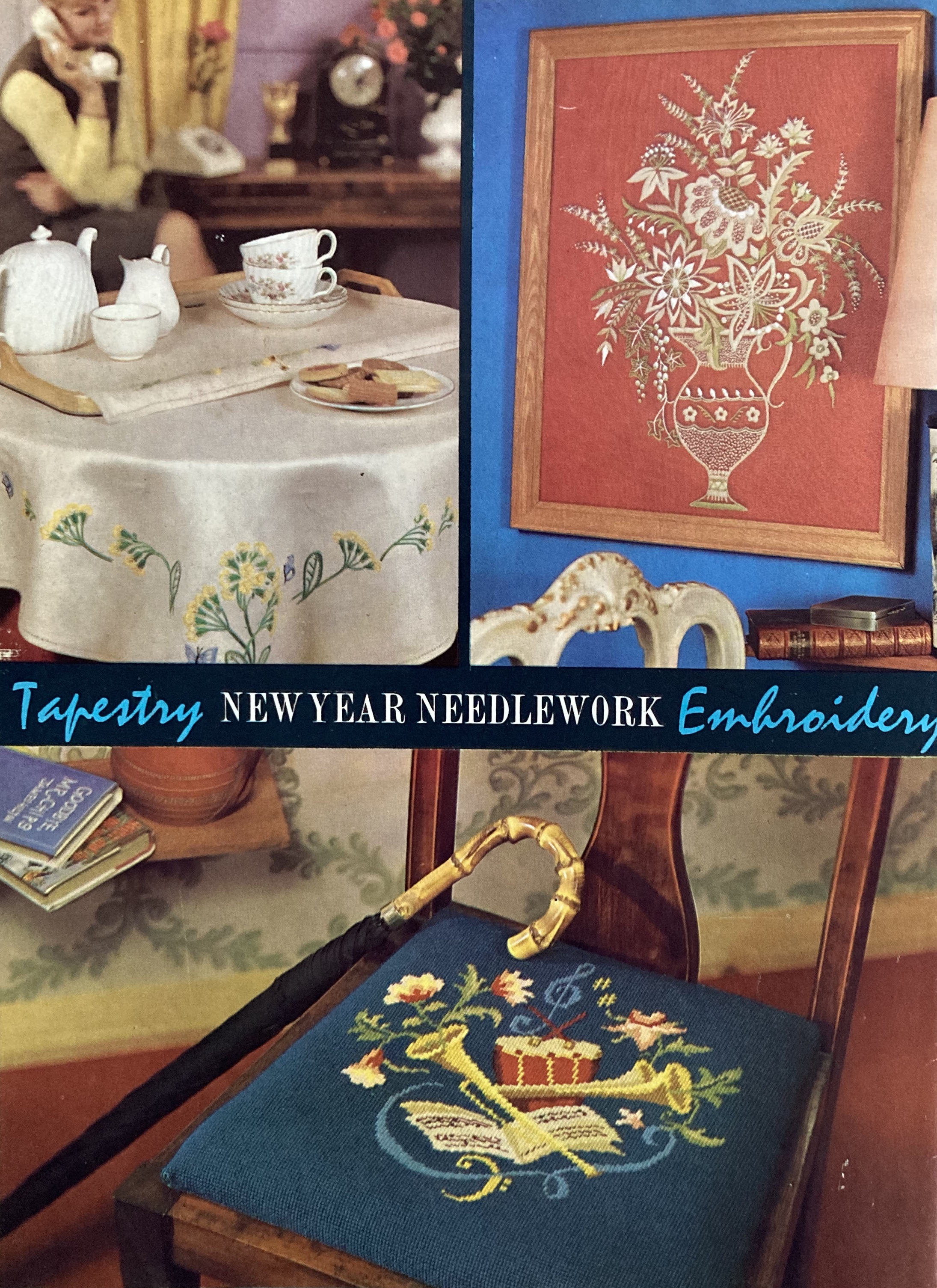 There are some fun homewares for all styles and abilities, starting with some very easy sewn and embroidered aprons with whimsical kitchen designs. I’m not interested in the aprons, but I love the top that the “teatime” model is wearing! You can make a tapestry panel of an Irish homestead in Rosguill, Donegal or a cushion or chair-back in a gorgeous traditional-inspired design updated “for a modern setting”. Both are done in tapestry wool on furnishing linen.