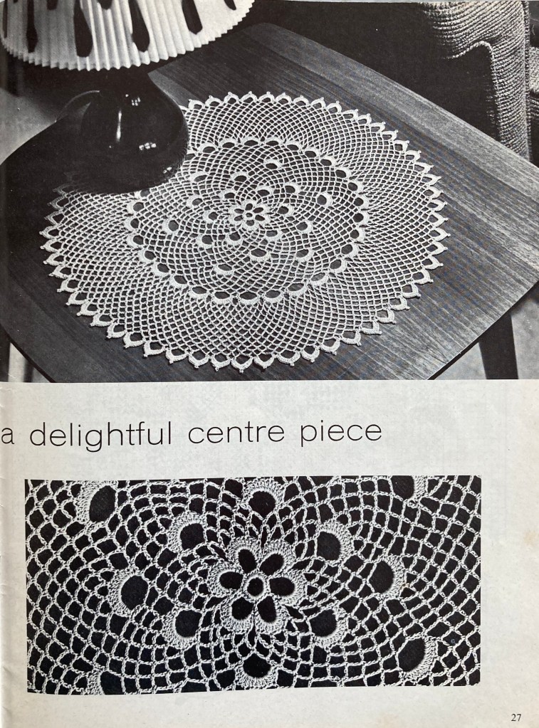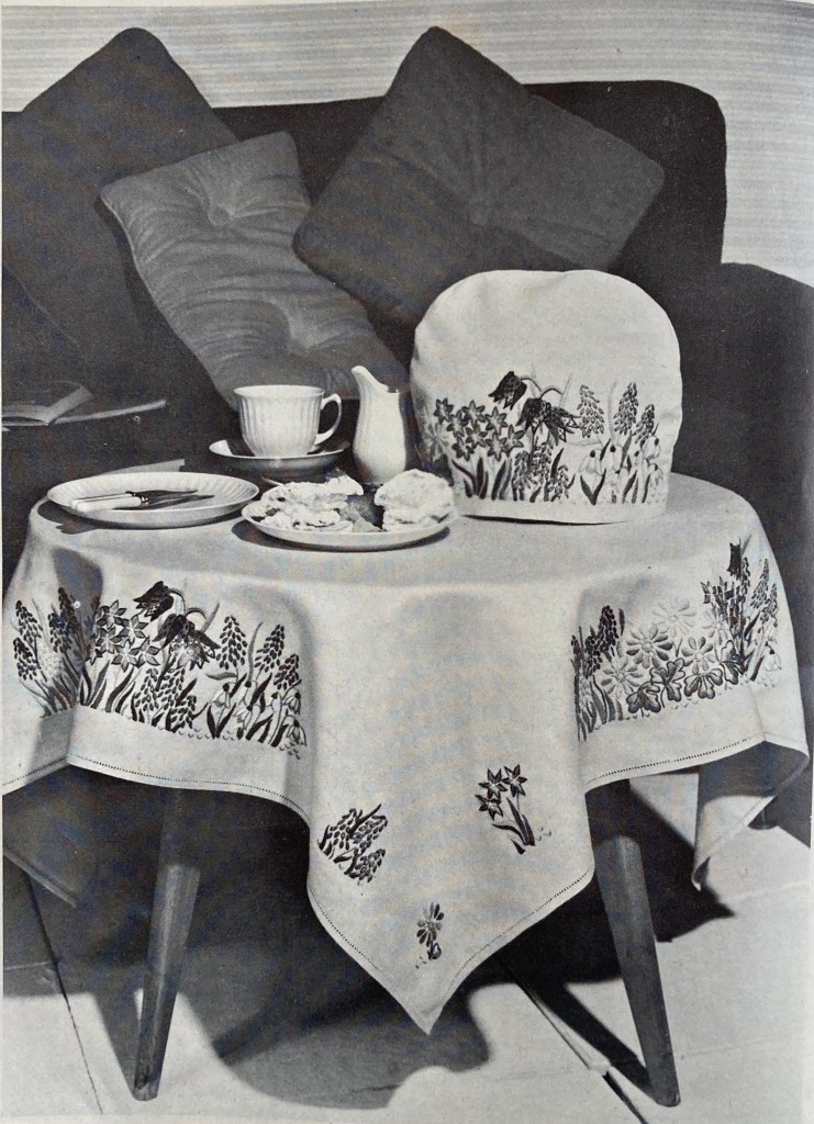 There are plenty of embroidery and tapestry projects for those long winter evenings. My favourite is the cross-stitch cat that can be made into a cushion, rug, and/or nightcase. (I have not yet understood the point of putting your pajamas or nightgown in a zippered case during the day. Were any of you readers children of the time and can tell me about it?) According to Stitchcraft, cross-stitch cats are lucky! I could use it. There’s also an appliqué picture of a boy and girl rowing, an embroidered dragon cushion or wall panel (that dragon is definitely high on something, cheers), an opportunity to turn leftover tapestry wool scraps into a tea-cosy or cushion, and a cross-stitch rug to use as a hall runner. The only specifically Christmas-themed project (in the entire issue, really) is an embroidered serving set of table cloth and/or trolley mats with somewhat abstract renditions of shepherds, sheep and a star.